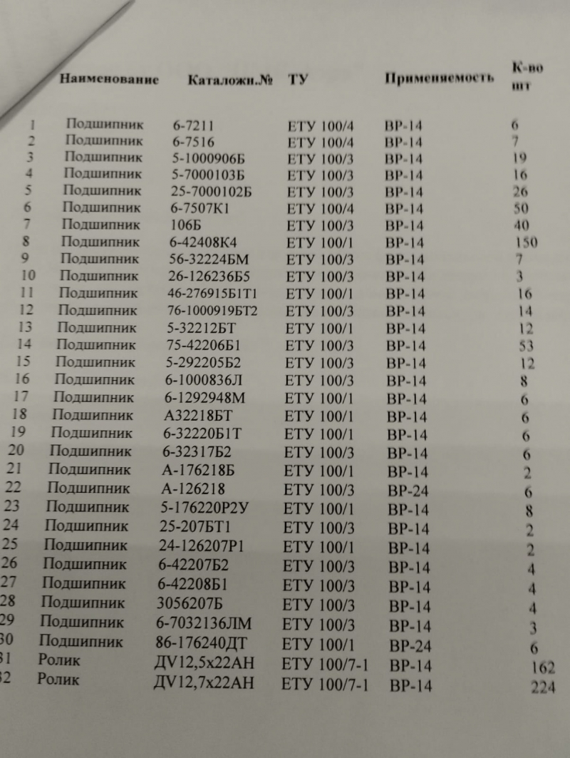 Подшипник 6-7211 ETY 100/4. Подшипник 6-7516 ETY 100/4. Подшипник 5-10009065 ETY 100/3. Подшипник 5-7000103Б ЕТУ 100/3.Подшипник 25-70001026 ЕТУ 100/3.Подшипник 6-7507K1 ЕТУ 100/4.Подшипник 106Б ETY 100/3.Подшипник 6-42408K4 ЕТУ 100/1.Подшипник 56-32224БМ ЕТУ 100/3.Подшипник 26-12623655 ETY 100/3.Подшипник 46-276915БІТІ ЕТУ 100/1.Подшипник 76-10009195т2 ЕТУ 100/3.Подшипник 5-32212БТ ЕТУ 100/1.Подшипник 75-4220651 ЕТУ 100/3.Подшипник 5-29220552 ЕТУ 100/3.Подшипник 6-1000836J ЕТУ 100/3.Подшипник 6-1292948М ETY 100/1.Подшипник А32218БТ ЕТУ 100/1.смотрите фото